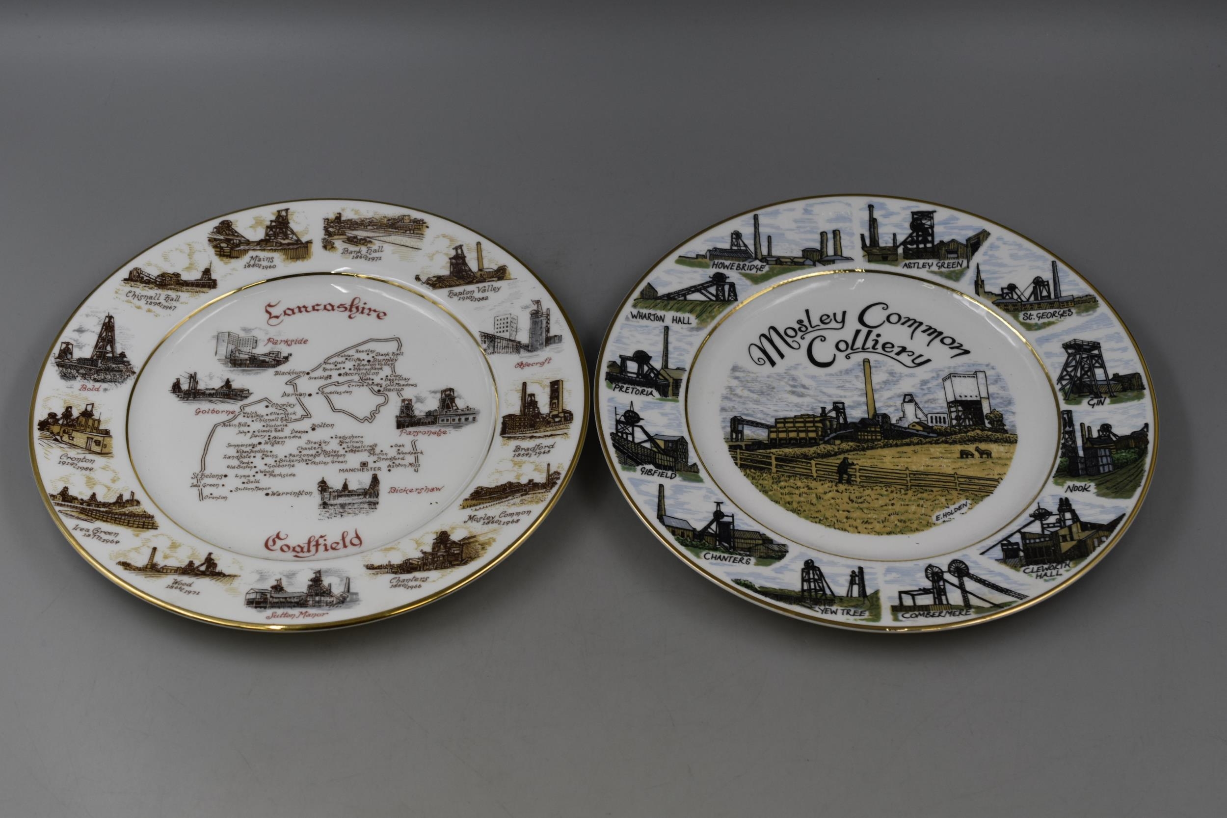 Two Edwardian Colliery Collectors Plates, Includes Mosley Common and Lancashire Coalfield