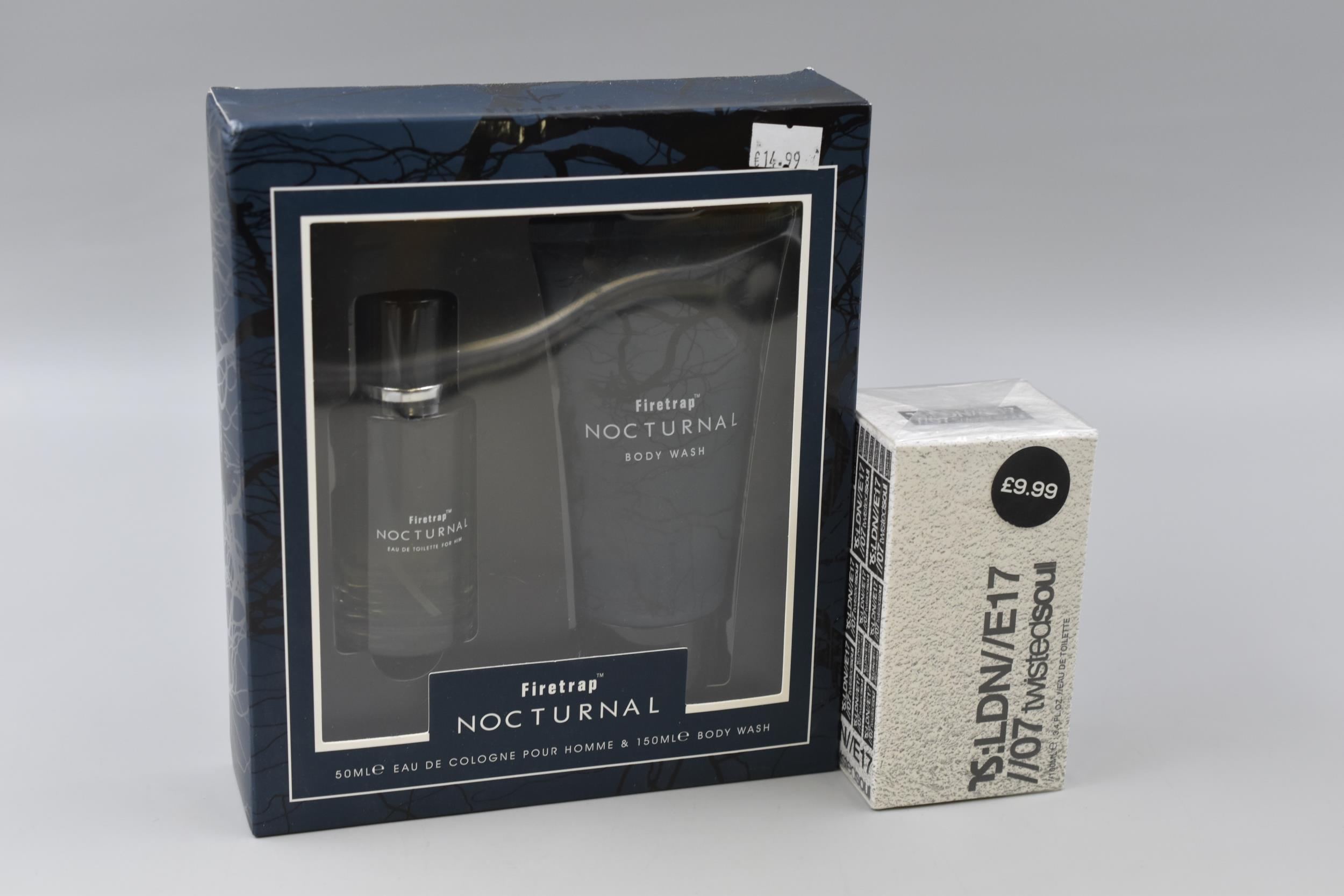 Two Male Fragrances to include a Box Set Firetrap Nocturnal Eau De Toilette and Body Wash and a Sealed Boxed 100ml Fruity Smelling Twisted Soul Aftershave