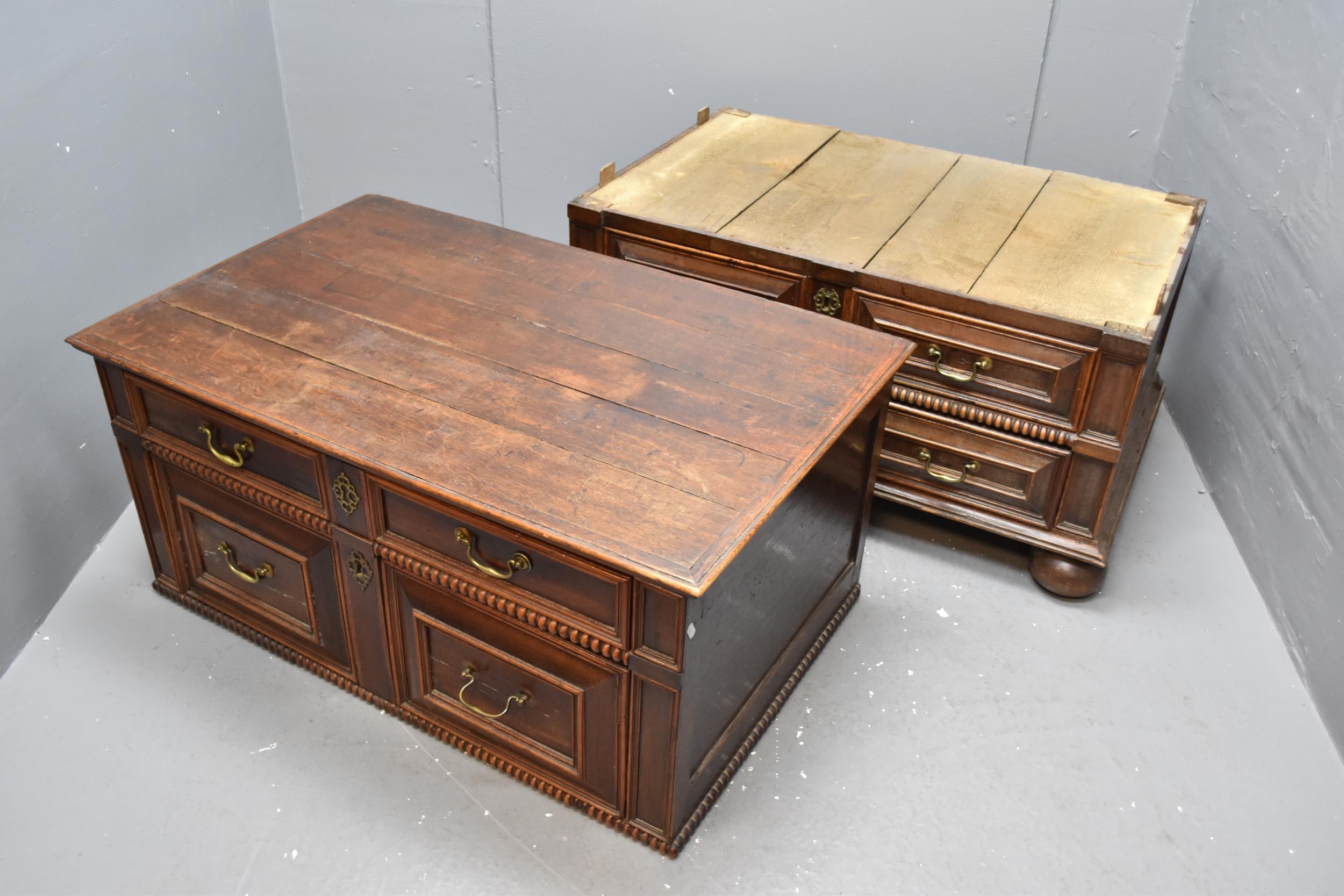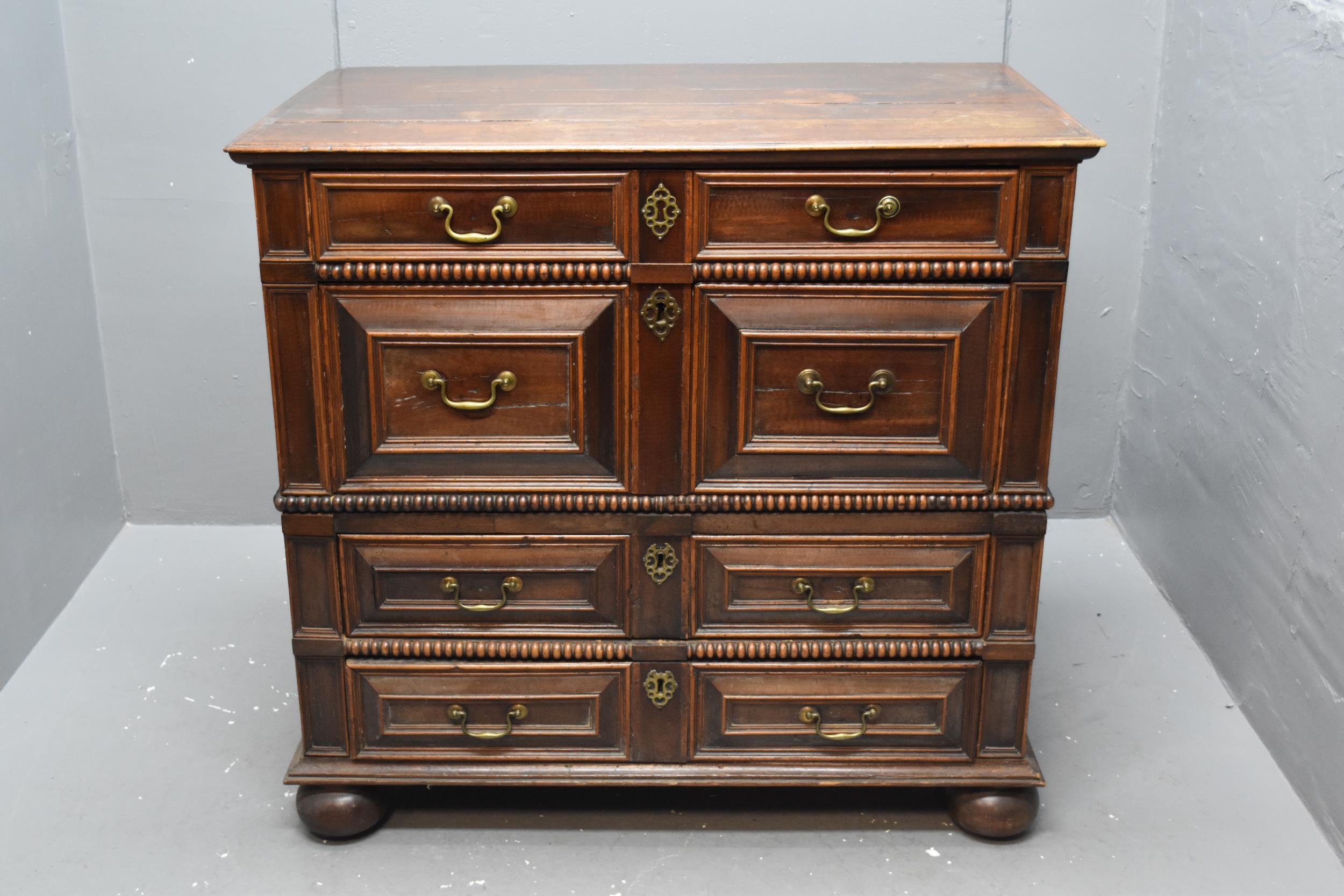 Beautiful Rare Original 17th Century Two Part Solid Oak Moulded Front Jacobean Chest of Four Drawers (no key present) approx 104x 97x 64cm, Local Delivery Can Be Arranged For a Fee.