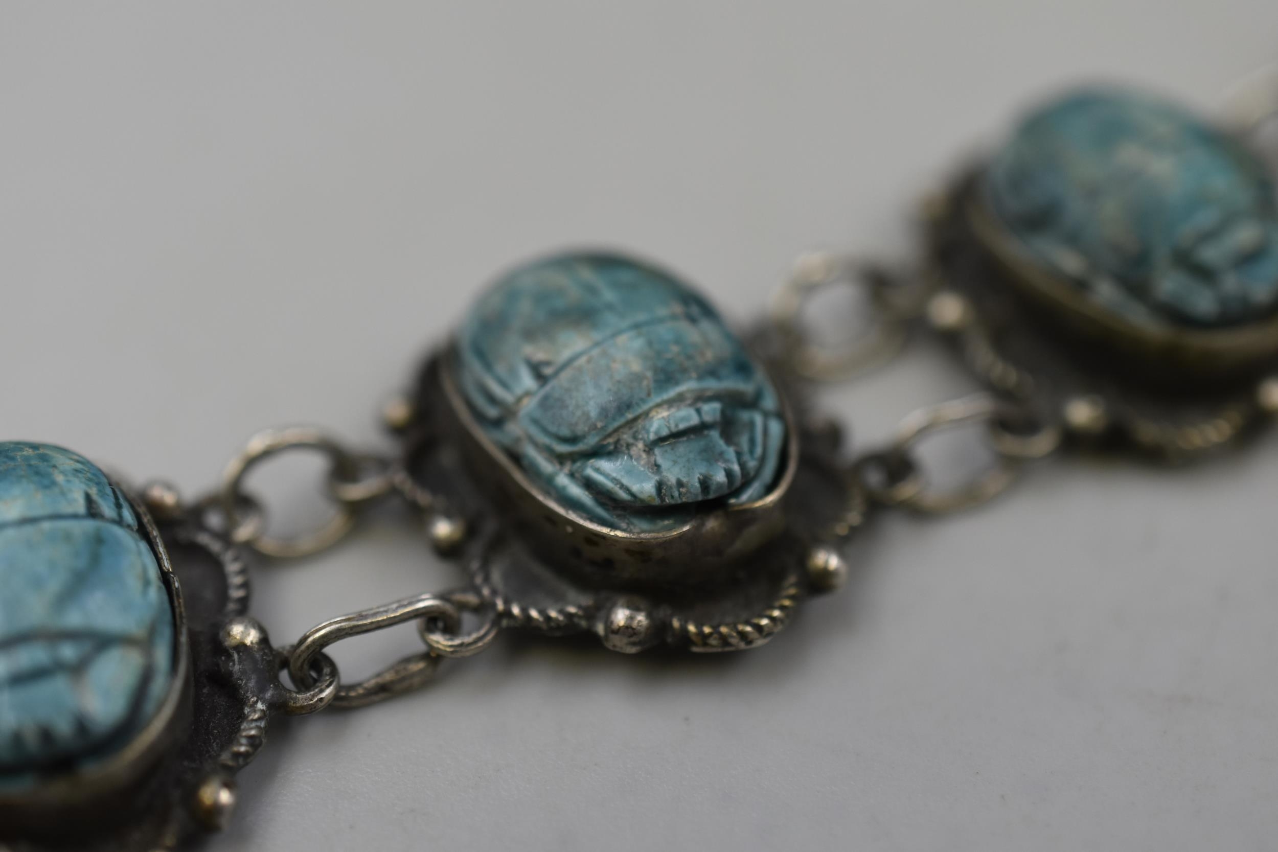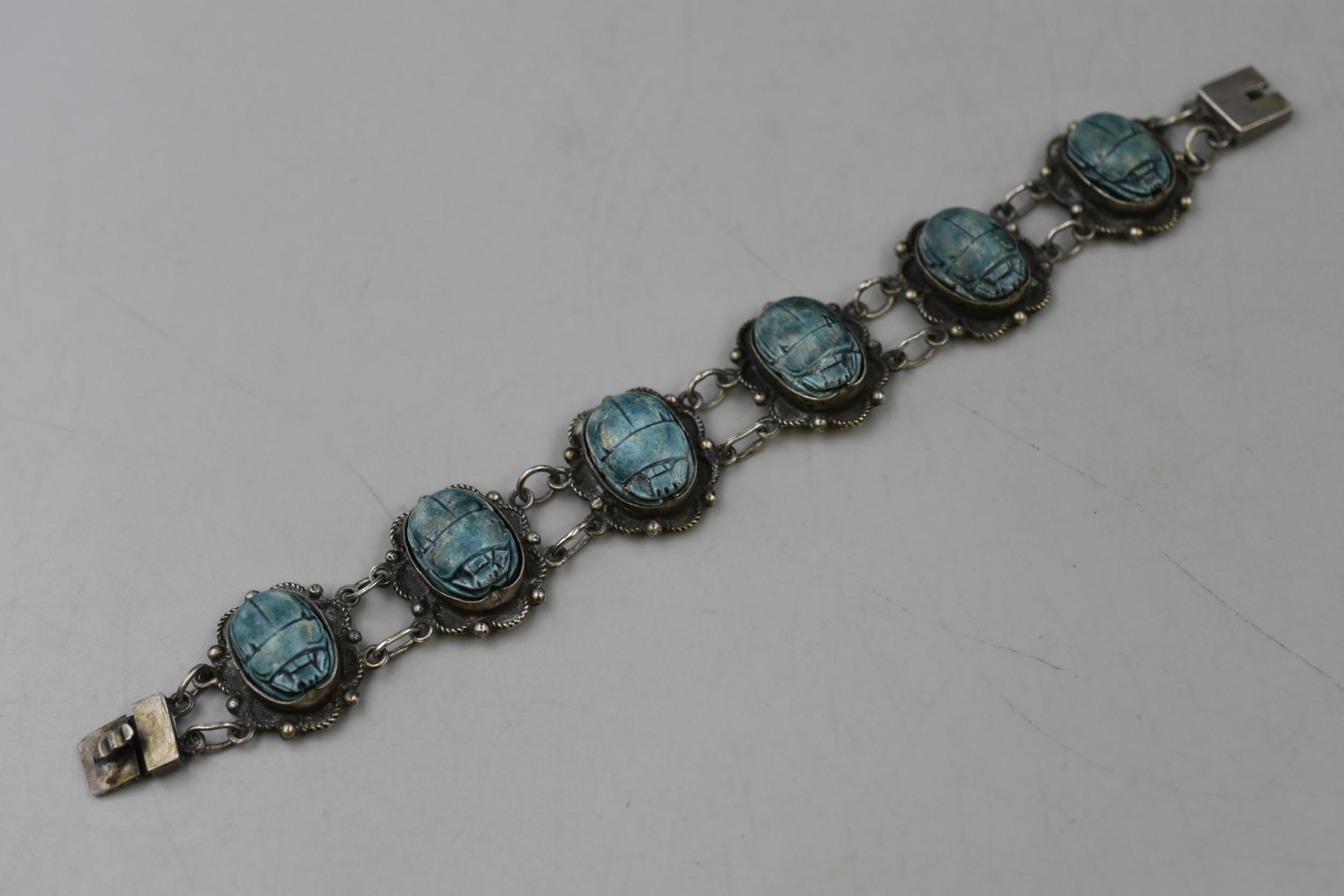 Silver Egyptian Revival Carved Scarab Bracelet complete with Presentation Box