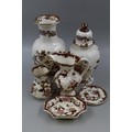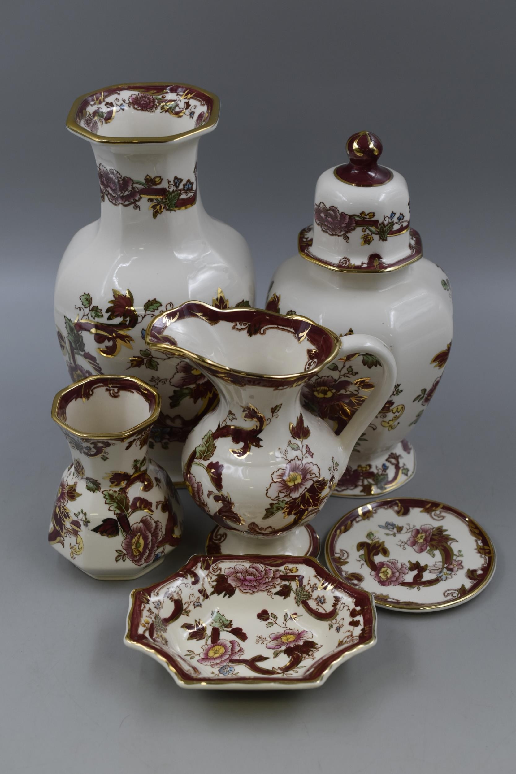 Six Pieces of Mason's Mandalay Red To Include Two Vases, Lidded Ginger Jar, Jug, And Two Others. Tallest Approx 26cm. As Found