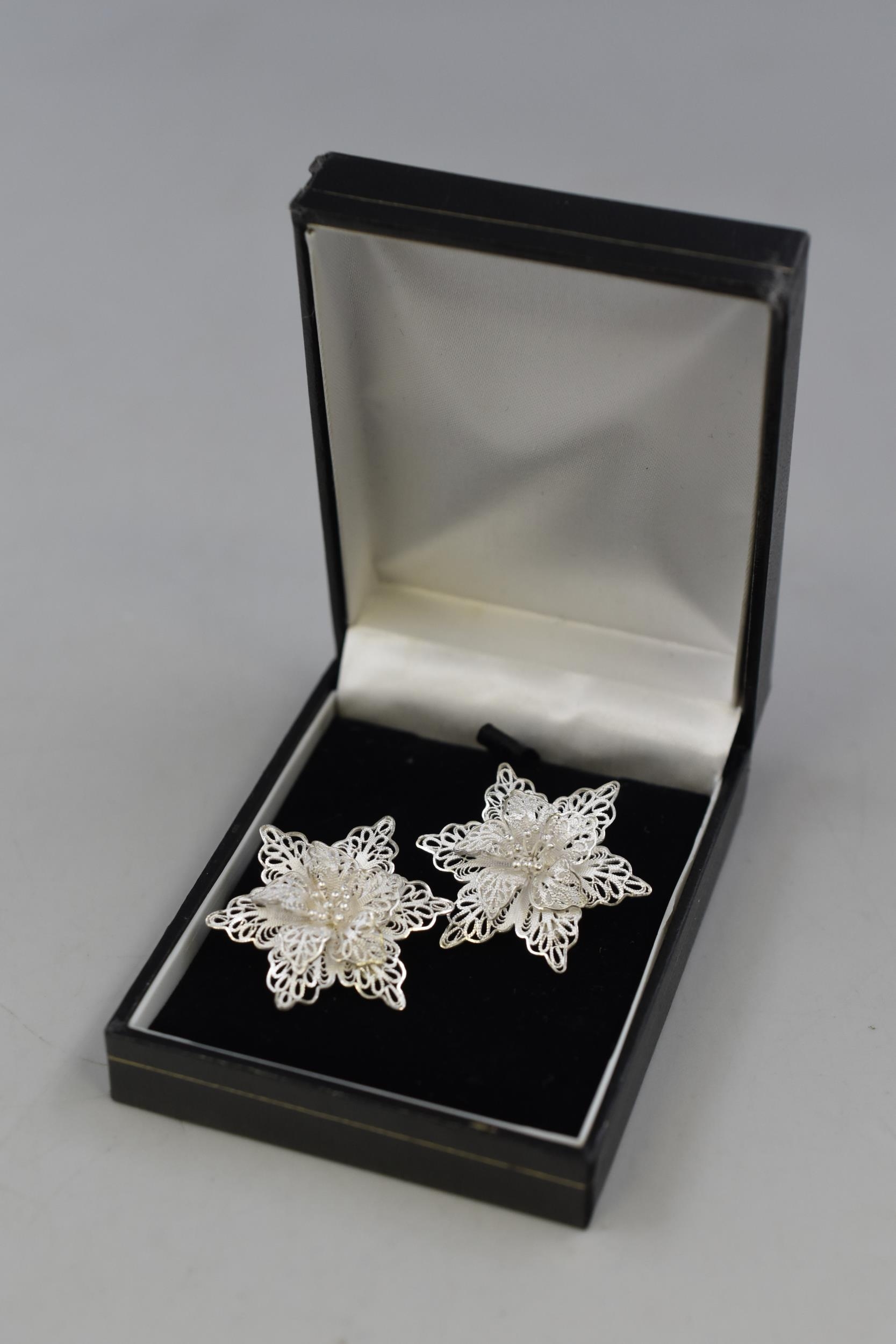 Pair of Silver 925 Filagree Floral Earrings Complete with Presentation Box