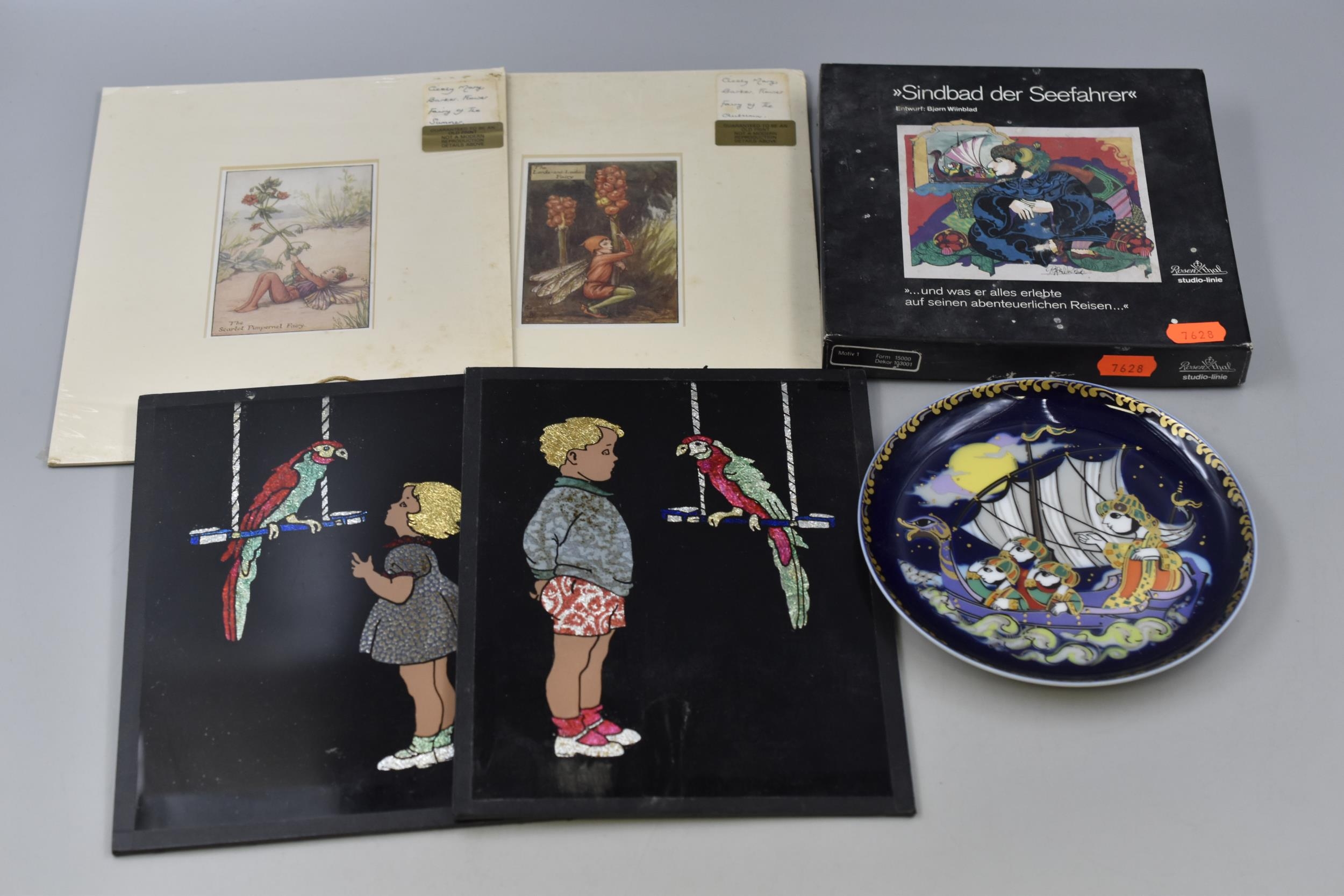 Rosenthal of Germany Sinbad Cabinet Plate in Box with two Cicely Mary Barker Prints and two 1950s Foil Pictures