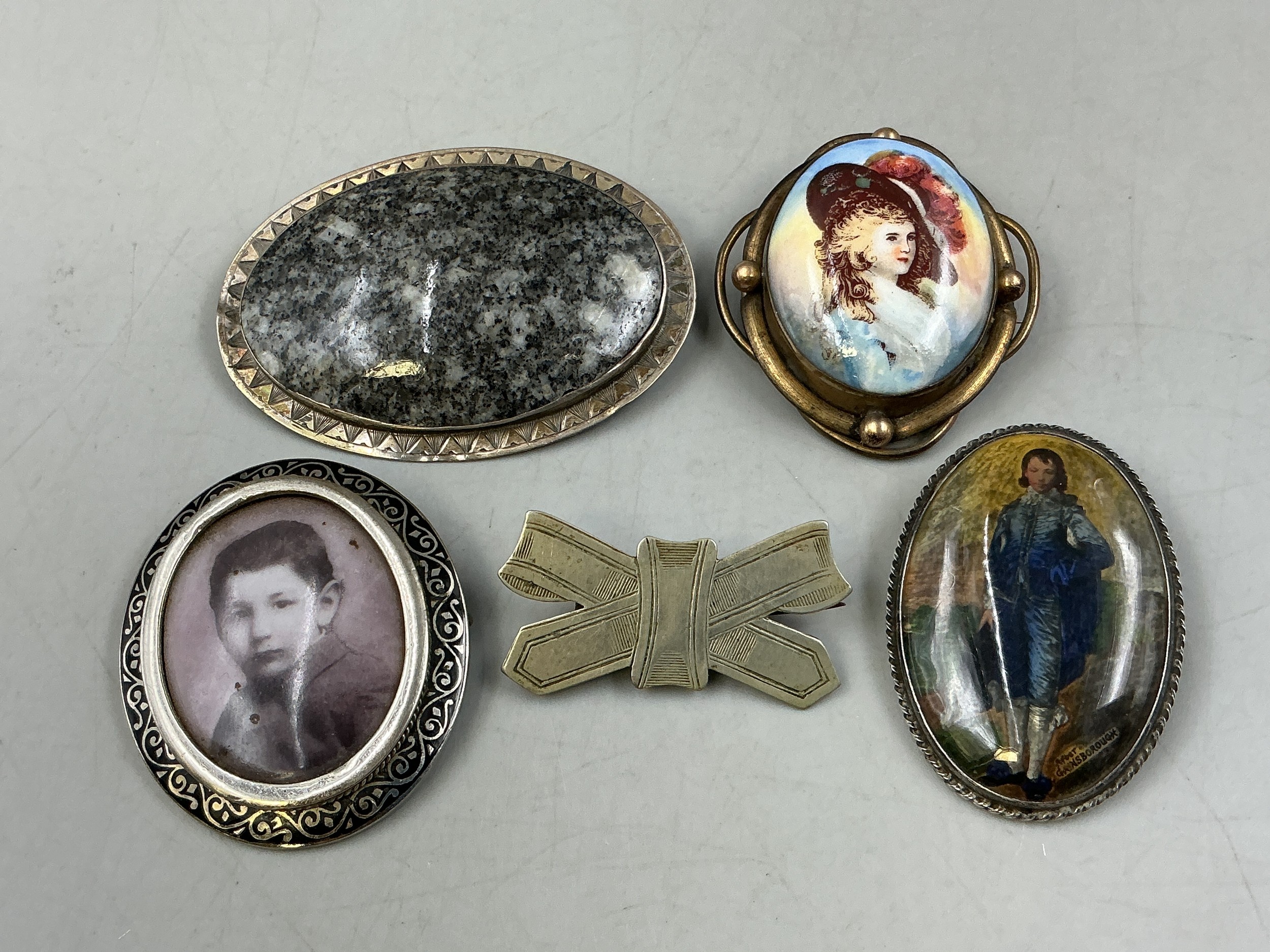 Selection of 5 Silver and Rolled Gold Brooches including Gainsborough's Blue Boy