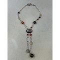 A 925. Silver Birmingham Hallmarked (DK Maker) Multistoned (Tigers Eye, Carnelian, Citrine, Agate, And More) Necklace, In Presentation Box. 24", Approx 70g. In Presentation Box